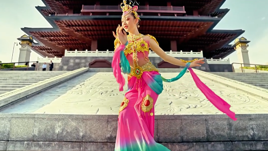 衣袂飘飘,舞姿如梦,一场穿越千年的飞天演绎悄然上演,以敦煌乐舞形式,穿插现代音乐表演。
